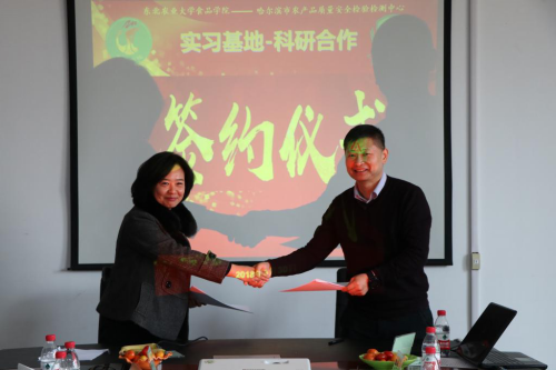 会上,双方共同签署了买球赛的app官网与哈尔滨市农产品质量安全检验检测中心共建科研合作及教学实习基地协议。