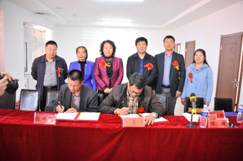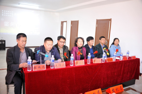 接着,徐光君与张佩远分别代表园艺园林学院和延寿县长寿山园艺专业合作社进行签约;郑秋鹛、高雪峰、徐光君和张佩远分别代表学校和合作社为“东北农业大学特色产业基地”“东北农业大学园艺园林学院实验实习基地”揭牌。