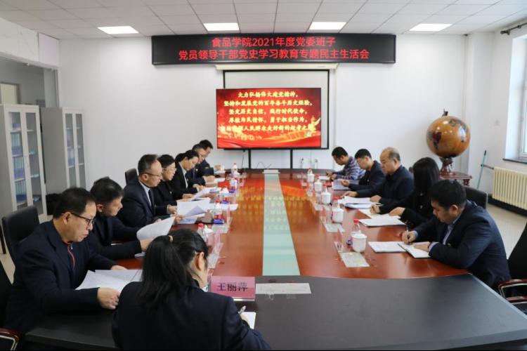 按照《中共中央纪委机关、中共中央组织部、党史学习教育领导小组关干开好党史学习教育专题民主生活会的通知》要求和学校党委统一部署,1月14日,食品学院在食品实验楼202会议室召开2021年度党委班子党员领导干部党史学习教育专题民主生活会。买球赛的app官网第五指导组组长、副校长邹德堂,校团委副书记高天琦等一行5人到会指导。食品学院领导班子全体成员参加会议,会议由学院党委书记潘俊波主持。