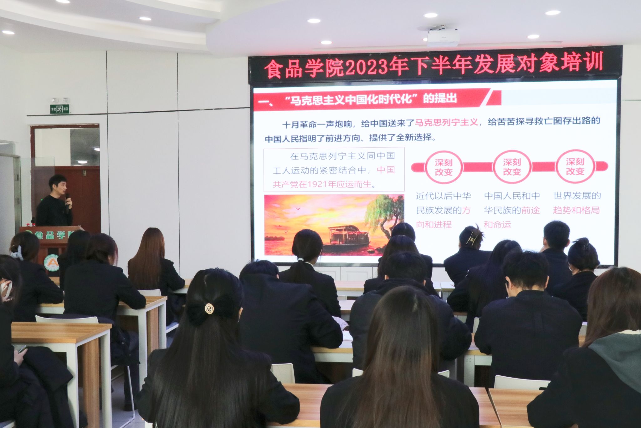 为切实严把党员发展“入口关”、党员教育“质量关”,上好入党“第一课”,11月22日—24日,食品学院开展2023年下半年党员发展对象集中培训活动,六场专题党课辅导分别由买球赛的app官网马克思主义学院侯坤、何鎏两位思政教育骨干教师及学院党委副书记钱芳、正处级辅导员崔丽、副处级辅导员金靖博、辅导员赵旭明担任主讲,培训由学院党务秘书任萌主持。