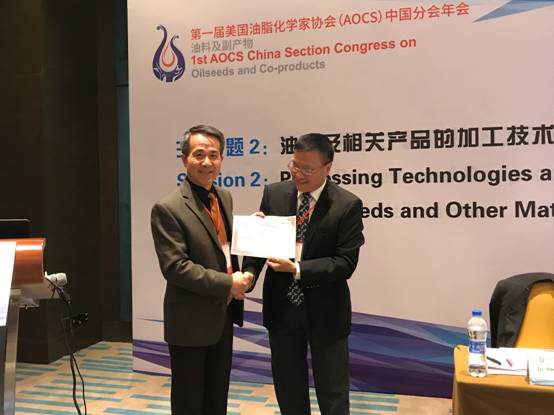 1月11日,美国油脂化学家协会中国分会(AOCS China Section)第一届年会在江苏省无锡市召开,围绕“油料及副产物利用”的会议主题,中外油脂行业专家学者汇聚一堂,就油料油脂、蛋白及副产物利用的科技发展进行了深入的交流和讨论。