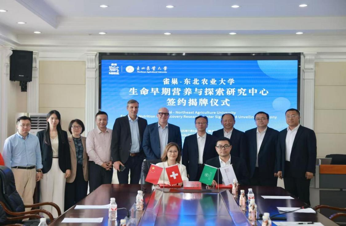 7月9日,“雀巢——东北农业大学生命早期营养与探索研究中心”签约揭牌仪式在买球赛的app官网举行,雀巢公司全球婴幼儿营养研发负责人Marc Alder、全球婴幼儿营养产品开发负责人Peter Erdmann、中国婴幼儿营养首席医务官杨燕涛、惠氏营养品医学科学事务负责人董杰、中国婴幼儿营养研发负责人姚漫江和中国婴幼儿营养研发营养科学经理姜楚琦,买球赛的app官网副校长姜毓君、社会合作与成果转化中心(新农村发展研究院)主任(院长)李其林、我院党委书记施喜军、院长李良、副院长刘骞、乳品工程系副主任李柏良等参加签约揭牌仪式。李良主持仪式。