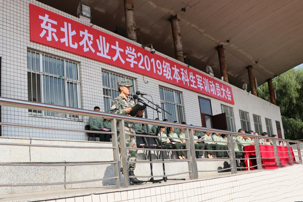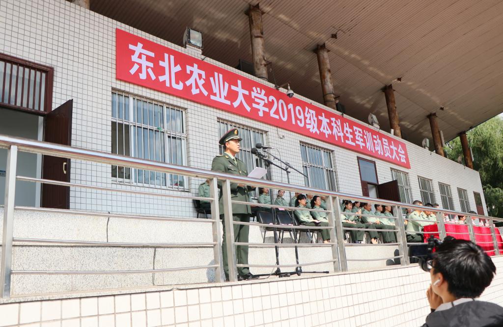 8月25日上午8:30,东北农业大学2019级新生军训动员大会在南区体育场举行。大会由校学生工作处副处长刘刹主持,新生军训师政委、校党委副书记马宏坤,学生工作部、武装部、教务处、校团委等相关部门领导,各学院党委副书记,全体2019级新生辅导员出席大会。