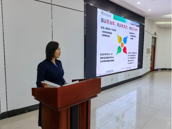 粮食工程系党支部书记王欢作汇报