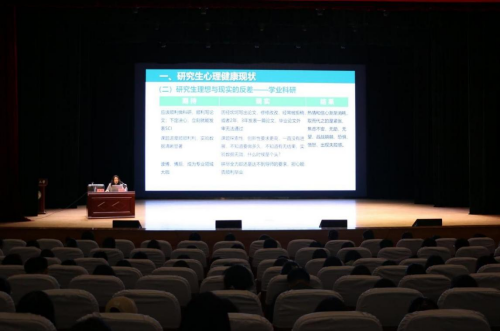李巾英教授从研究生心理健康现状出发,介绍了日常生活中常见的心理问题,讲述了心理健康问题的成因、识别心理健康的信号、应对心理问题的方法,并引导研究生善于表达,勤于沟通,调整状态,锻炼心态,正视心理问题,重视心理健康。