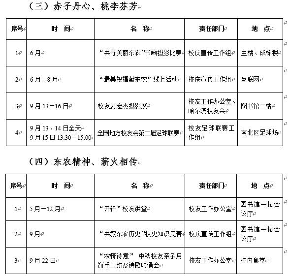 东北农业大学70周年校庆系列活动安排