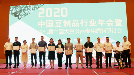 买球赛的app官网江连洲团队(右六)和王绍东团队(右七)荣获“中国豆制品行业科技创新推选项目”一等奖