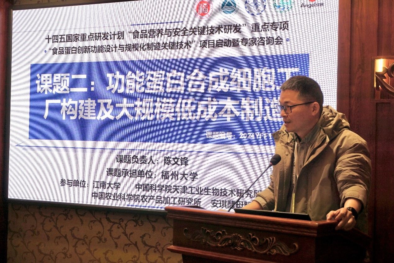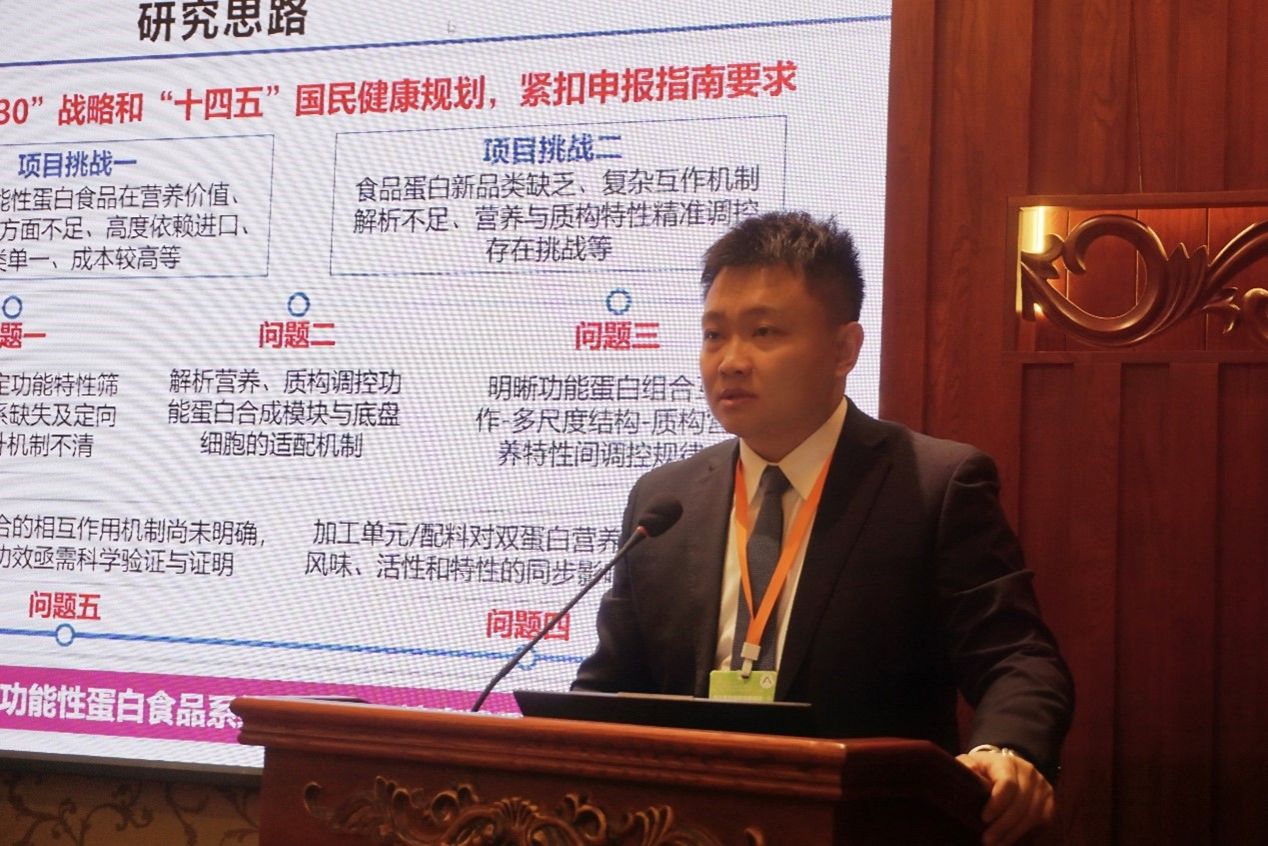 孙世钧对莅临的领导、专家和项目组成员表示热烈欢迎,对大家长期以来对学校的关心和支持表示感谢,并介绍了学校“十四五”以来获批国家重点研发计划及重大专项项目情况。他指出,国民营养与健康状况是反映一个国家经济与社会发展水平的重要指标。通过该项目的实施,为我国食品蛋白领域的发展提供有力的科技支撑,推动了我国食品产业向高质量、高附加值方向发展,助力健康中国建设。他表示,作为项目牵头单位,买球赛的app官网将加强项目的日常管理与服务,为项目顺利实施提供坚实的条件保障,不辜负管理部门与合作单位的期望和信任。在下一步的执行过程中,希望项目团队及各课题组能够充分发挥各自优势,以高度负责的态度和高效协同的精神,确保项目高质量、高标准完成,早日实现成果产业化,让科技发展红利最大程度惠及社会公众,为我国国民营养保障事业的发展作出新的更大贡献。