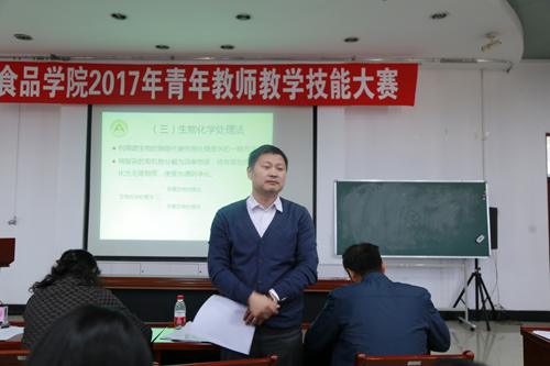 为进一步提高教师教学技能水平和师资队伍整体素质,4月22日,食品学院在食品楼三楼报告厅举办了“食品学院2017年青年教师教学技能大赛”决赛,着力开展青年教师教学岗位技能大比武、展示课堂教学成果、分享教学实践经验。校工会副主席李巍、教务处副处长张伟应邀出席了本次比赛,学院党委书记张显伟、副院长刁铁军、李晓东、侯俊财及系主任代表张华江、王喜波、李春出席并担任评委,各系选拔推荐的6名教师,学院50岁以下中青年教师观摩了比赛。比赛由学院党委副书记、院工会主席潘俊波主持。