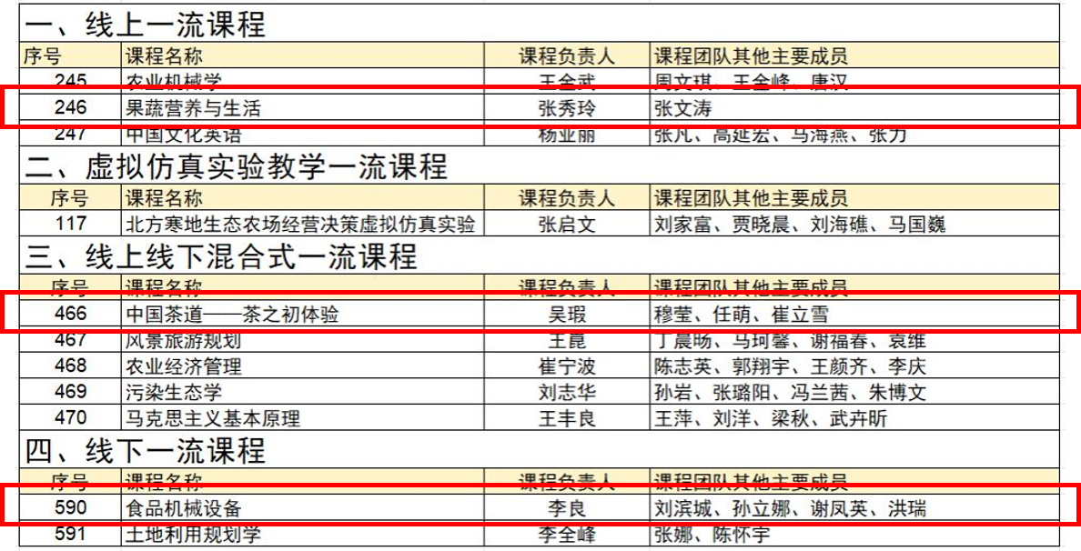 根据《教育部关于一流本科课程建设的实施意见》(教高〔2019〕8号)和《教育部办公厅关于开展第三批国家级一流本科课程认定工作的通知》(教高厅函〔2023〕24号)相关要求,经有关部门(单位)教育司(局)、各省级教育行政部门及高校申报推荐,教育部组织网络评审与会议评审,拟认定5999门课程为第三批国家级一流本科课程。此次拟认定的国家级一流本科课程涵盖五大类别,其中线上课程1000门、虚拟仿真实验教学课程500门、线下课程1842门、线上线下混合式课程2206门、社会实践课程451门。我院3门课程拟认定为第三批国家级一流本科课程,其中张秀玲老师为课程负责人的《果蔬营养与生活》认定为线上一流课程,吴瑕老师为课程负责人的《中国茶道——茶之初体验》认定为线上线下混合式一流课程,李良老师为课程负责人的《食品机械设备》被认定为线下一流课程。