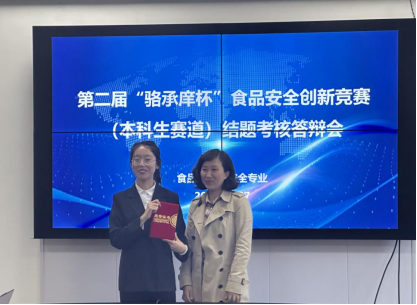 9月27日下午,在学校教务处、食品学院和“骆承庠”基金会的大力支持下,食品质量与安全系在食品楼202会议室举行了东北农业大学第二届“骆承庠杯”食品安全创新竞赛结题答辩会。食品学院党委副书记钱芳出席了本次答辩会,实验中心主任郑冬梅、乳品工程系主任杜鹏、食品营养与健康系主任刘璐、食品质量与安全系副主任徐宁、食品质量与安全系王松担任答辩委员会成员,食品质量与安全系孙玉雪担任答辩秘书。