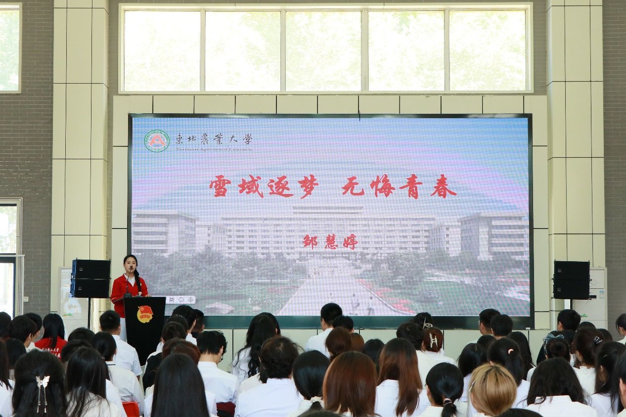 第十届研究生支教团成员蔡松格、邹慧婷、赵婉妤、孙萌分别分享了他们在西藏昌都市第二高级中学、贵州省黔南布依族苗族自治州龙里县第七小学和黑龙江省双鸭山市饶河县五林洞镇中心小学支教经历。他们表示,在今年五四青年节到来之际,习近平总书记给新疆克孜勒苏柯尔孜自治州阿图什市哈拉峻乡谢依特小学戍边支教西部计划志愿者服务队全体队员回信,勉励广大青年到祖国和人民最需要的地方发光发热。他们表示,希望各位新入团的同学,努力求学,用实际行动践行“端好中国饭碗”“食安为民”的初心使命。