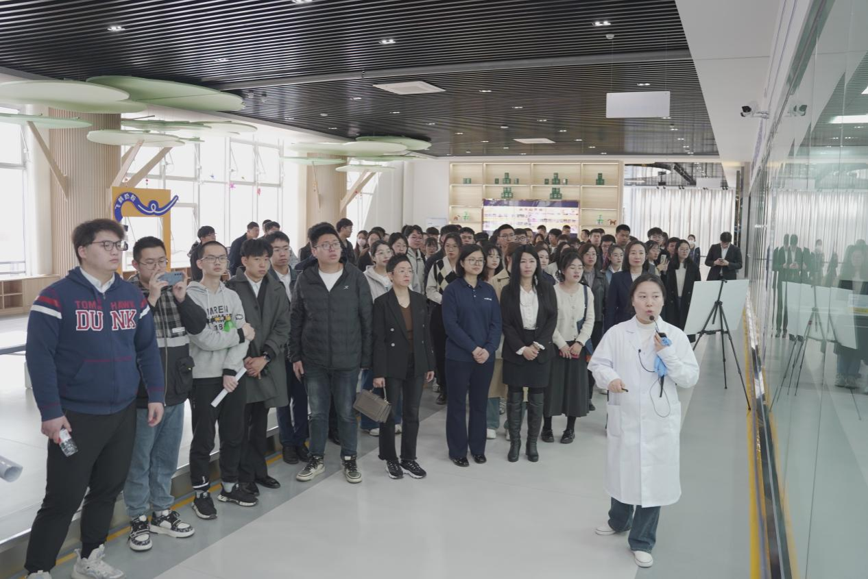 在参观企业园区时,我院2019届校友崔东影重点讲解了母乳检测与研究中心的仪器设备以及目前技术发展现状。
