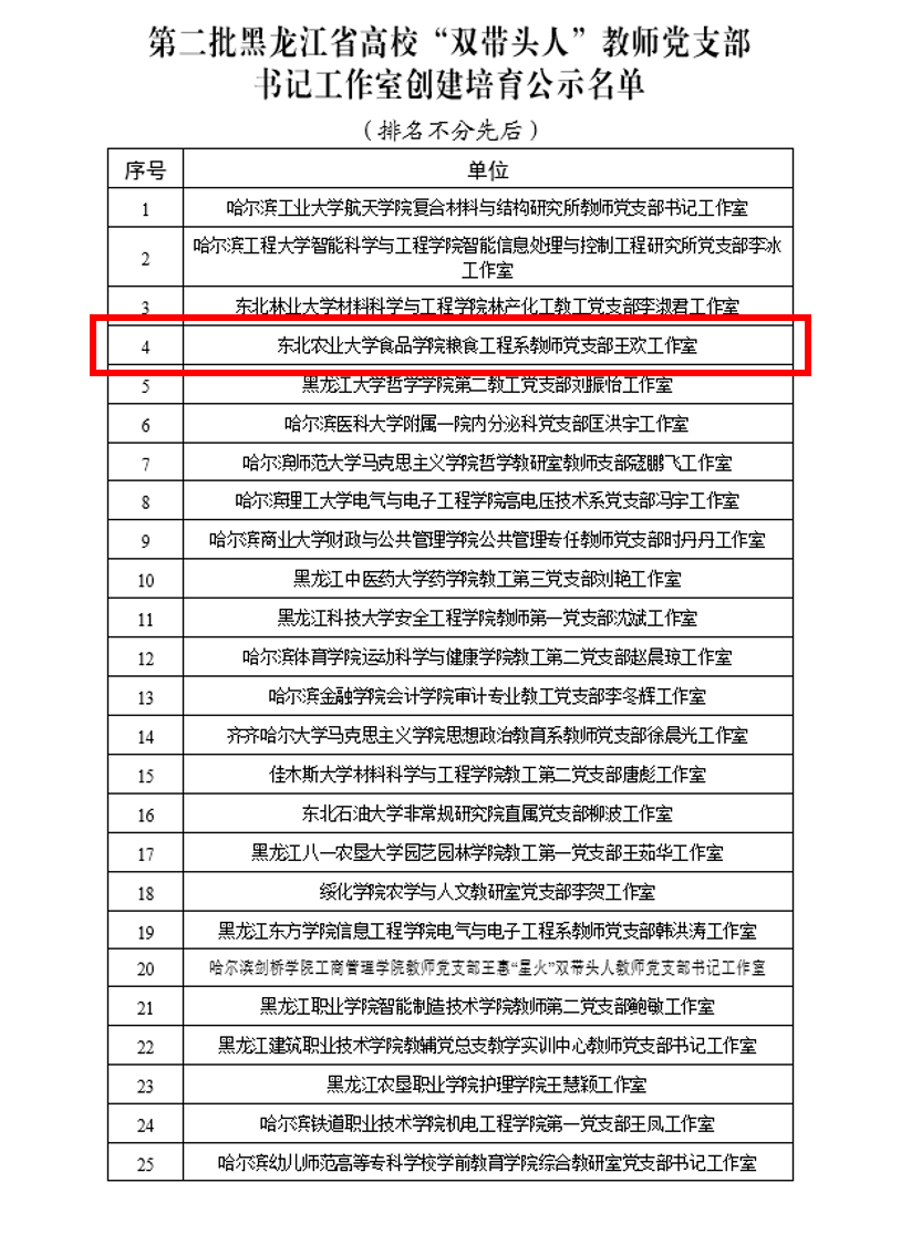 本次评选中,我院党委获批第二批全省公办高校党建工作标杆院系创建培育单位;我院粮食工程系教师党支部王欢工作室获批第二批全省高校“双带头人”教师党支部书记工作室创建培育单位。成绩的取得充分展现了我院党建工作的良好成效,充分彰显了党建引领学院高质量发展的创新实践。