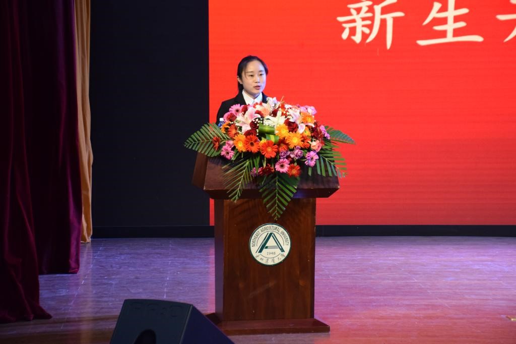 2015级本科生、国家奖学金获得者祁新华同学的发言,凝聚了所有老生对新同学的真心祝福。她说:“在大学,‘学’是根本,作为一名学生‘学习’是永恒的使命。勤能补拙,努力终会有回报;要勇于实践、学以致用;要不忘初心,砥砺前行”。祁新华还表达了对学校和学院的感恩与祝福。
