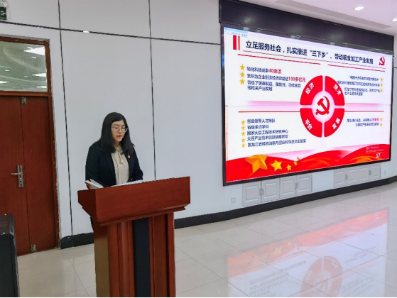 粮食工程系党支部书记王欢作汇报