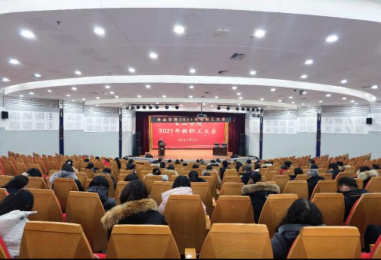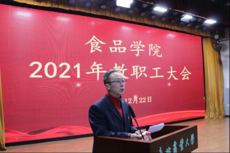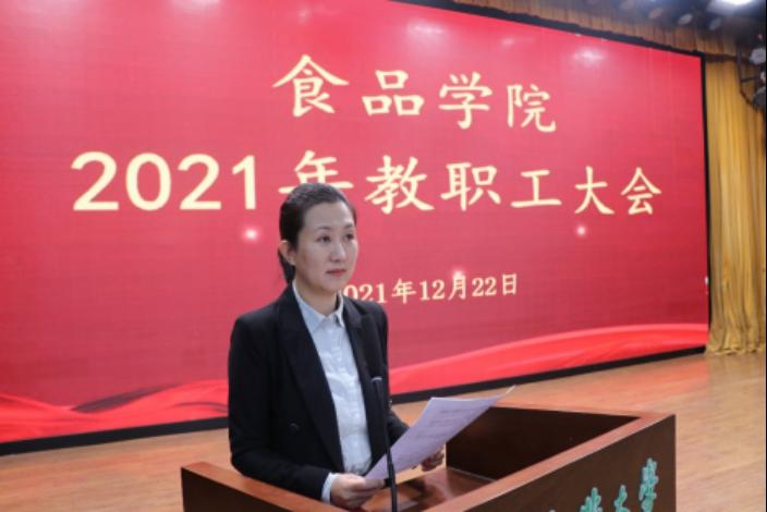 12月22日下午,食品学院2021年教职工大会在图书馆一楼报告厅召开。校工会副主席宋颖出席会议,食品学院99名教职工参加会议。会议由学院党委副书记、工会主席钱芳主持。