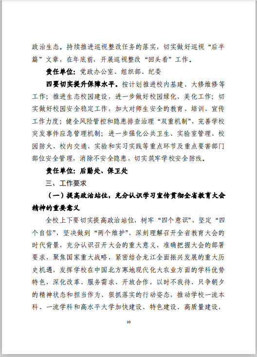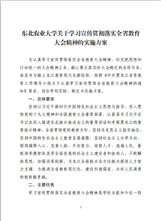 关于印发《东北农业大学关于学习宣传贯彻落实全省教育大会精神的实施方案》的通知