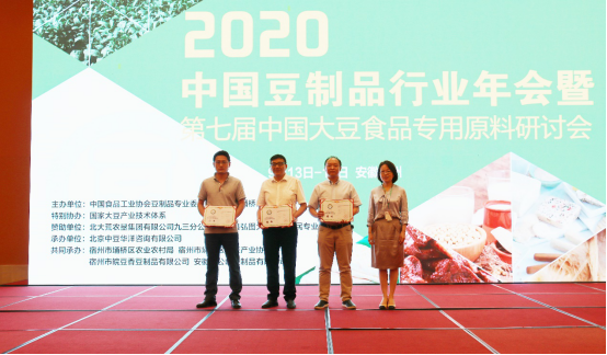 买球赛的app官网江连洲团队(右六)和王绍东团队(右七)荣获“中国豆制品行业科技创新推选项目”一等奖