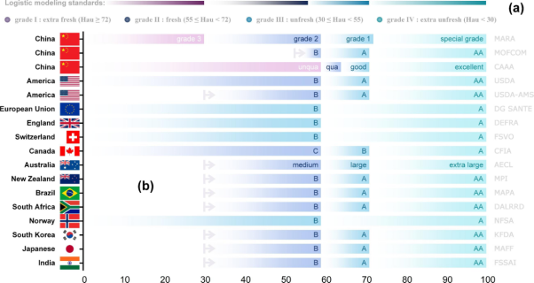 世界各国食品标准中,鲜蛋新鲜度的Haugh unit分级标准