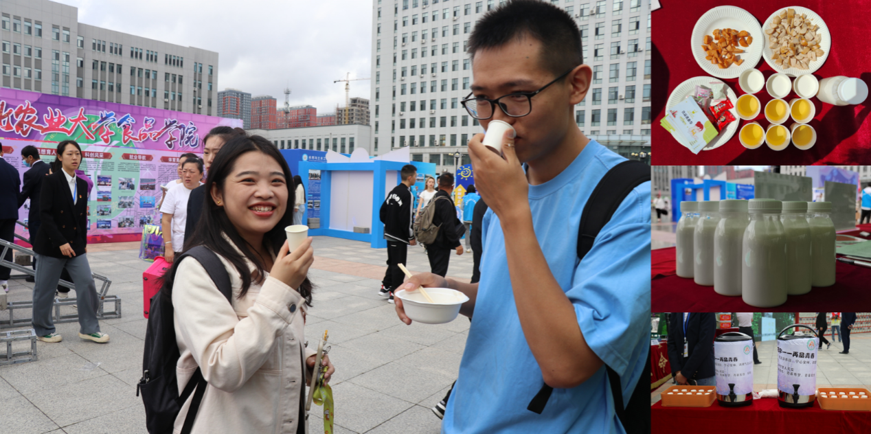 此外,学院还在两个迎新会场为新生和家长准备了酸奶、冷泡茶和香肠等特色产品,在提升新生“参与感”的同时,让新生直观感受到食品科学的魅力。