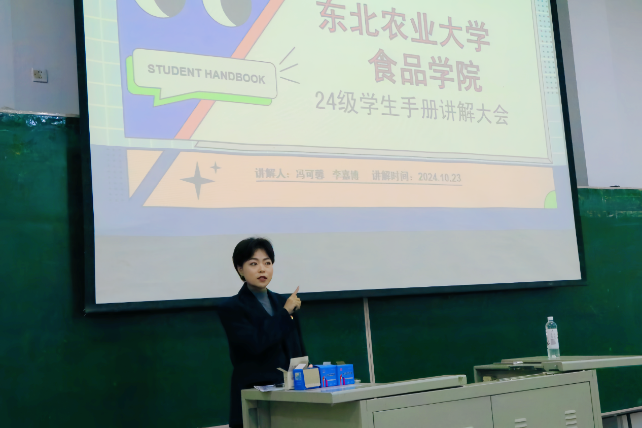 冯可馨围绕本科生综合素质测评管理实施办法、各项奖学金评定方案、先进班集体与星级文明寝室评选、推优入党等方面进行了全面深入的解读和介绍,并强调了《学生手册》在规范大学生学习与生活、帮助大学生积极健康发展的重要性,提醒同学们要认真学习并遵守规定。