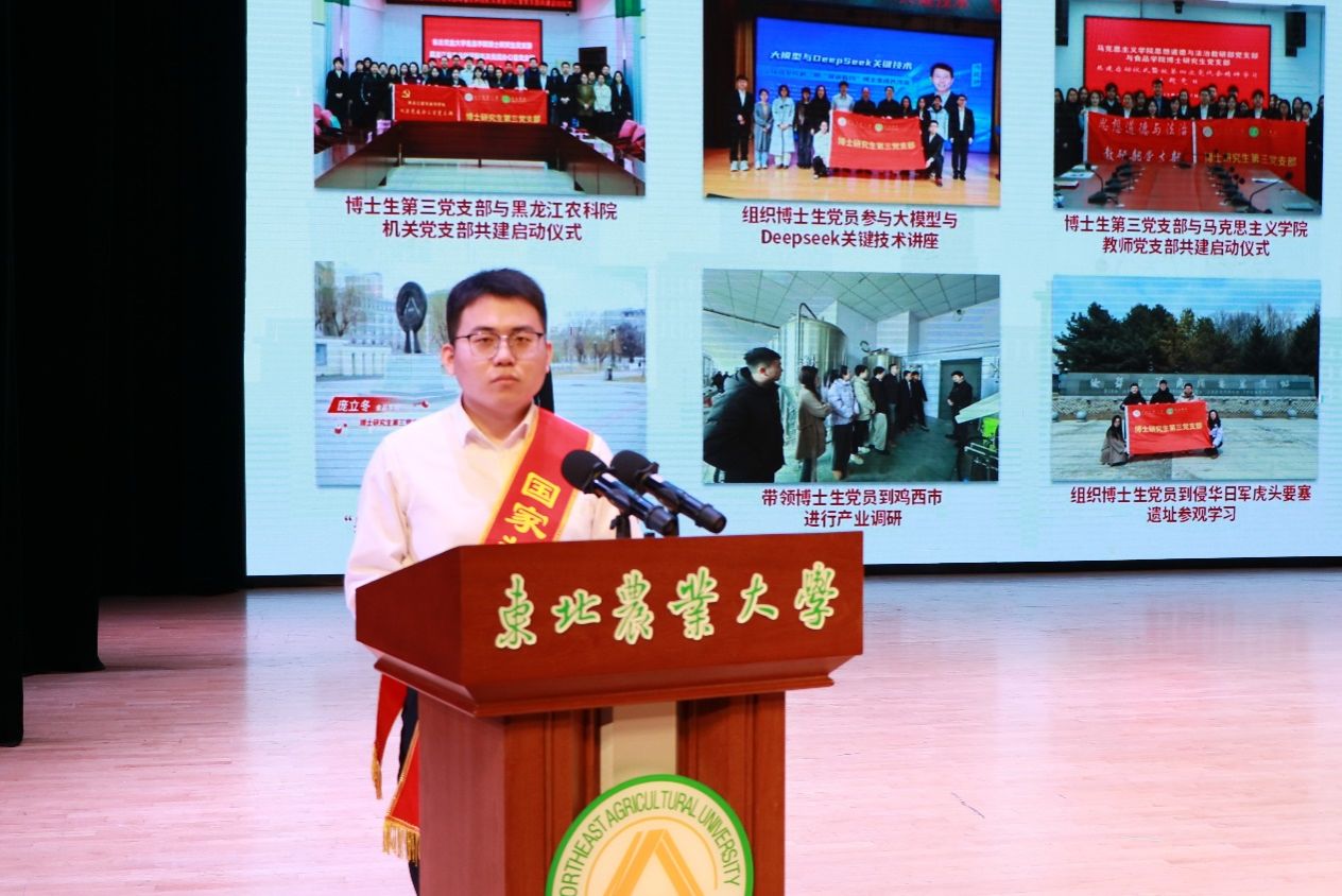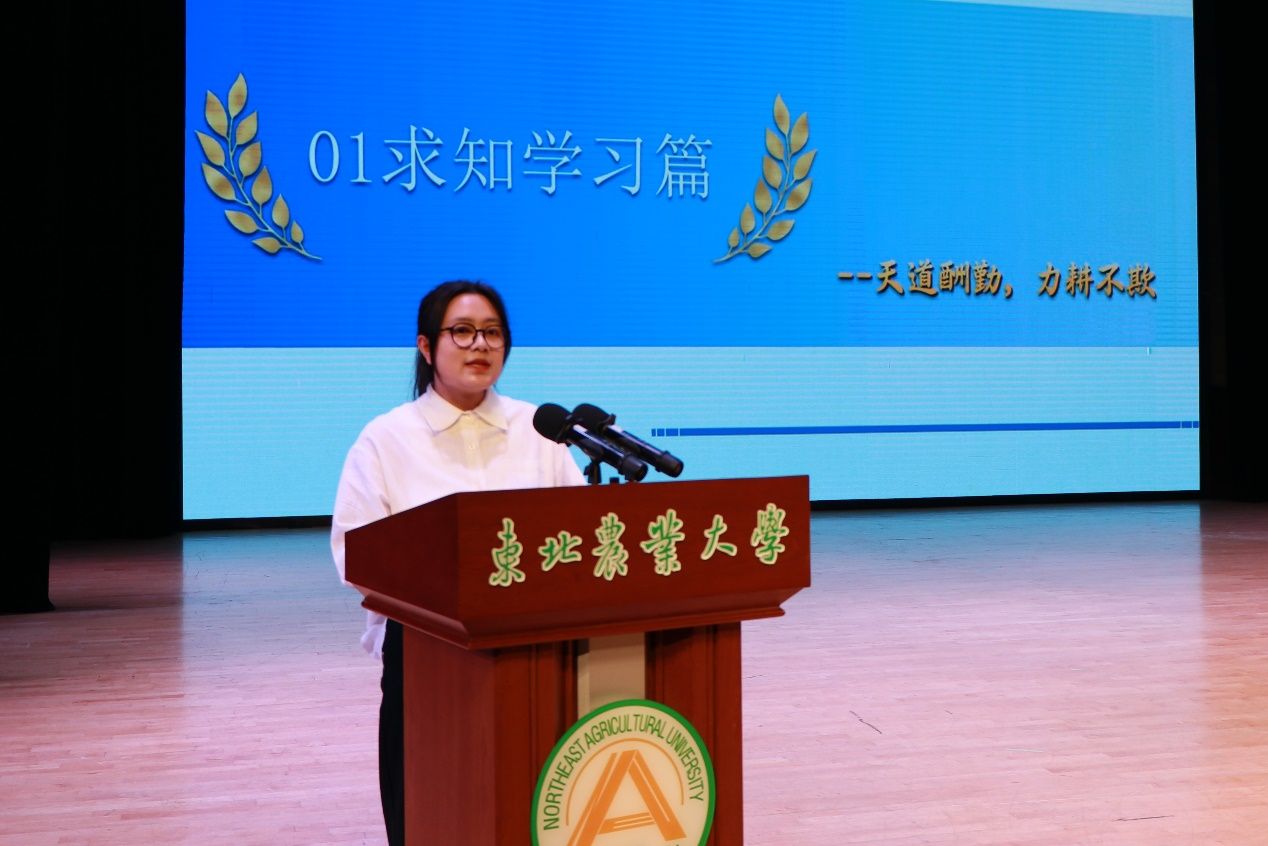 博士研究生国家奖学金获得者庞立冬、大学生年度人物获得者李佳楠、大学生年度群体代表耿仁义分别代表获奖学生和集体发言。他们表示,作为食品学子,要求知敏学、严于律己、追梦不止,要充分发挥专业优势,将个人理想融入国家发展方略,融入龙江振兴需求,融入学校学院建设,用实际行动诠释“何谓青年,青年何为”的时代担当。