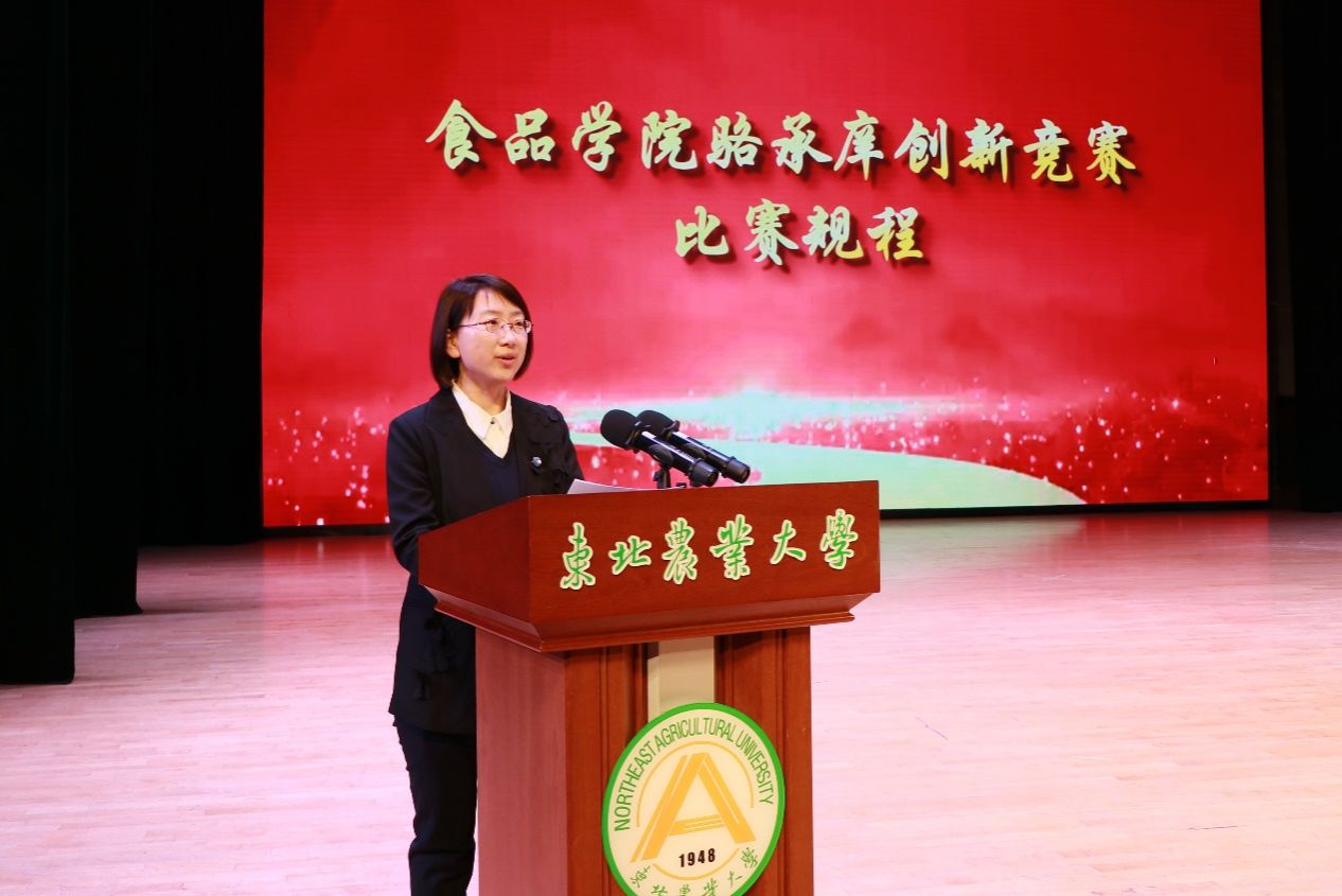 副院长徐宁宣布食品学院2025年骆承庠杯创新竞赛启动,公布竞赛规程、指导教师名单和项目库,并为指导教师代表颁发聘书。